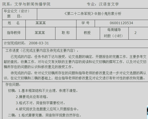 3、“存在的问题及解决方案” 要结合选题报告和学位论文的内容来写,不能空洞无物。“导师对论文工作的评价”要手写,不能打印。