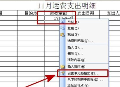 2、右击鼠标,在出现的对话框中,选择“设置单元格格式”。