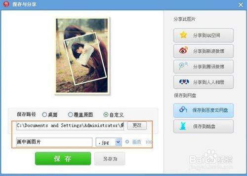 制作画中画图片到这就到尾声啦,最后将制作好的照片进行保存吧,点击右上角的保存与分享按钮即可进行保存啦。前面说过一遍啦,就不说啦。