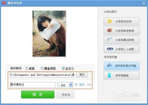 此时回到了软件的主界面,先将这个裁剪好的照片保存出来,待会儿还需要用到的,点击右上角的保存与分享按钮就可以选择保存的位置,可以选择在桌面,方面待会儿添加进来。