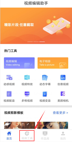 首先需要打开“清爽视频编辑器”,在首页下方找到“视频工具”点击进入视频工具页面。