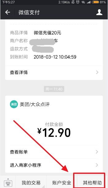 3、在该页面中点击打开微信支付,选择右下角的“其他帮助”。