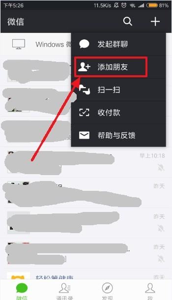 1、打开微信Version 8.0.6,点击右上角加号中的“添加好友”按钮。
