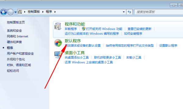 进入程序设置功能窗口之后,找到“默认程序”功能