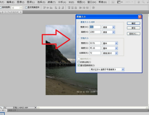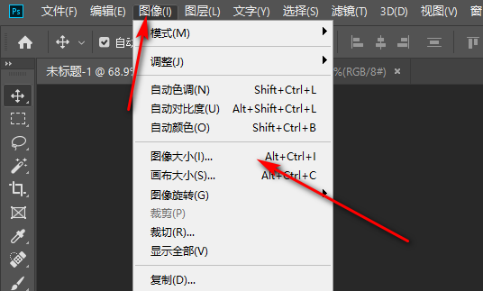 3、点击页面上的“图像”选项,选择“画像大小”,得到以下窗口。