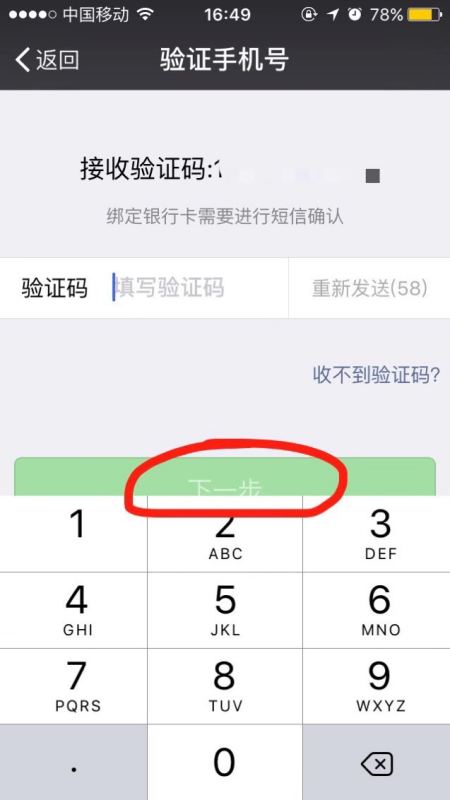 6、输入银行发来的验证码后,点击“下一步”即可成功绑定银行卡。