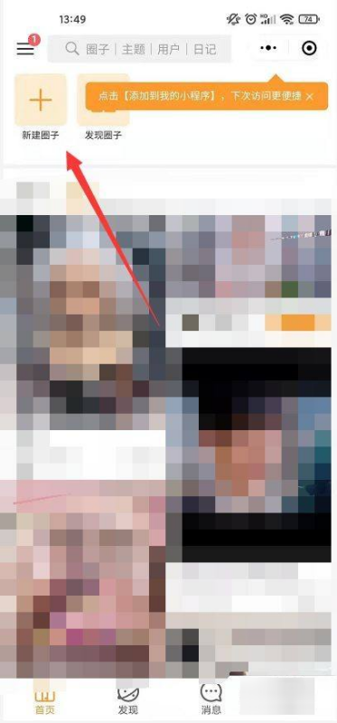 在小打卡程序中点击【+】号新建圈子。