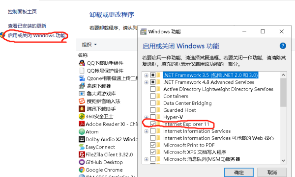 二、IE11重装的方法:开始——设置——应用——可选功能——添加功能——点“IE11”会出现安装,点击安装,返回可选功能,然后等待安装完成。随后打开应用界面底部 程序和功能,启用或关闭Windows功能,找到IE11并在前面方框打对钩,点确定,等进度条完成,提示重启,然后重启即可。然后打开c盘路径为C:\Program Files\Internet Explorer,找到iexplore,右击发送快捷方式到桌面快捷方式。就完成了IE11的重装。