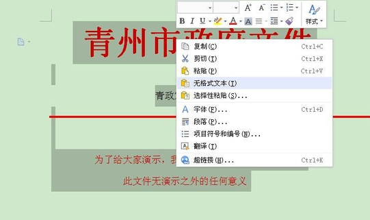4、点击插入红头文件中的文字后,文字就可以进行编辑了。