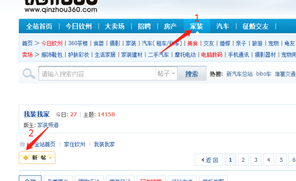 首先打开钦州360,然后选择你要发帖子的版块,比如家装,具体如图: