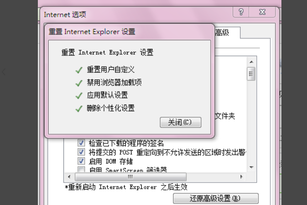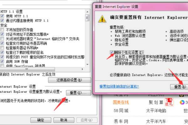 5、然后点击确定进行重置即可加快ie浏览器运行速度。