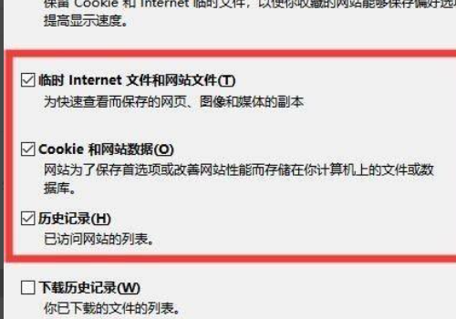 4、勾选【临时Internet文件和网站文件】、【Cookie和网站数据】、和【历史记录】三项。