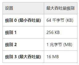 若要更改吞吐量级别,选中“指定入站 TCP 吞吐量级别”复选框,然后根据下表选择吞吐量级别。吞吐量级别可以等于或小于最大值,具体取决于网络条件。