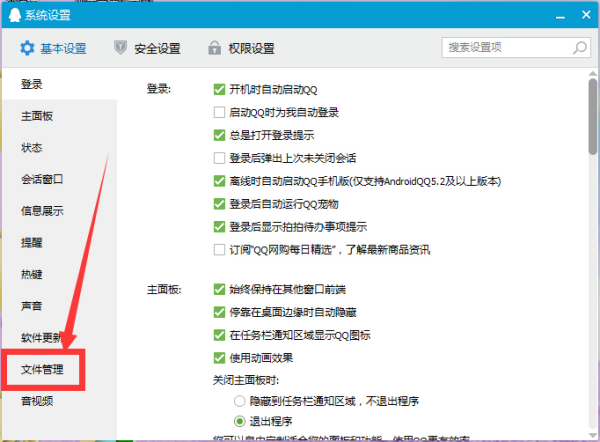 在“系统设置”界面窗口的左侧导航栏里点击“文件管理”