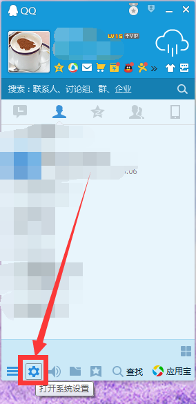 电脑上登陆qq,在qq主界面底下点击那个齿轮的图标按钮,即打开“系统设置”