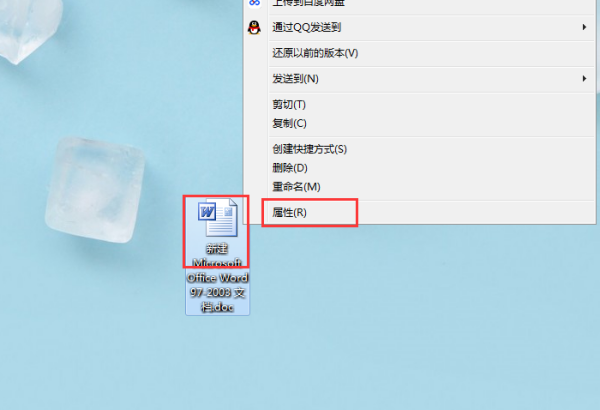 一、首先右键点击文档,弹出菜单内点击“属性”。