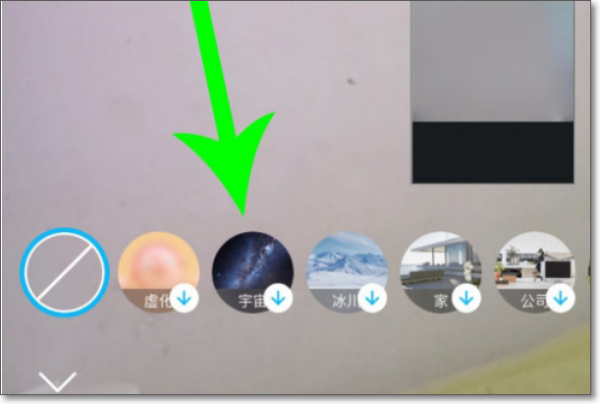 4、打开虚拟背景列表,然后点击“宇宙背景”。如图所示。