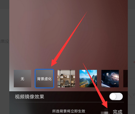 6、之后打开视频会议,就可以使用虚拟背景,不受到真实背景影响了。