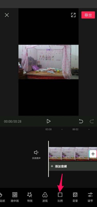 2、然后将一段需要制作的视频添加进入,并选择下方功能的比例。