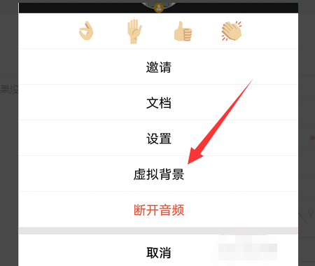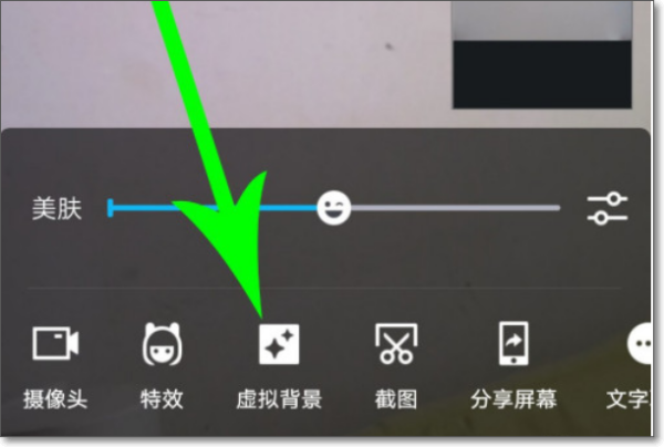 3、点击后打开底部选项列表,然后点击“虚拟背景”。