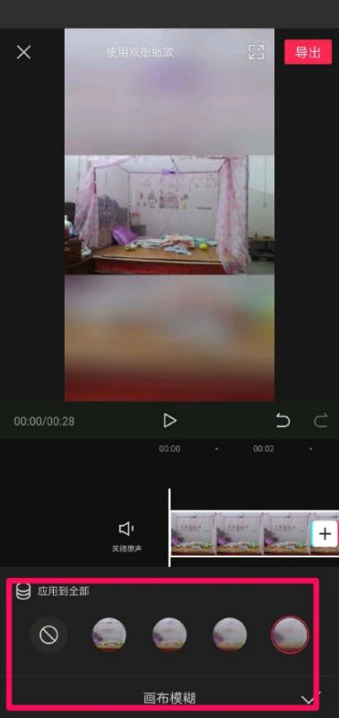 5、最后选择里面四个模糊选项里面其中的一个效果使用,即可生成模糊的背景视频。