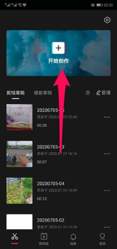 1、首先,打开手机,找到手机上面的剪映进入,选择上方的“+”号。