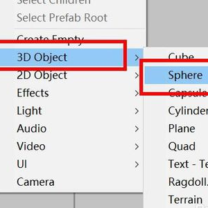 3、进入新项目之后在Hierarchy面板中右键创建一个3D Object Sphere圆体