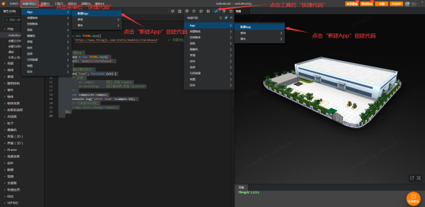 在线开发为用户提供了相应的快捷代码和官方示例,如果你正在用 ThingJS在线开发页面,可以通过以下两种方式来编辑项目: