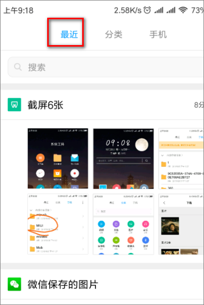 3、刚进入的时候,默认是位于“最近”选项卡。