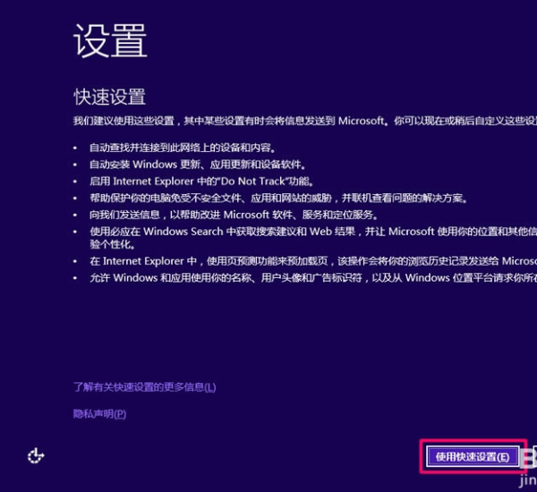 15、到了设置页面,选择快速设置吧,那个自定义要花的时间比较多.