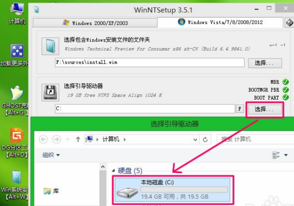 6、选择引导器要选择C盘,相当于手工指定启动分区.