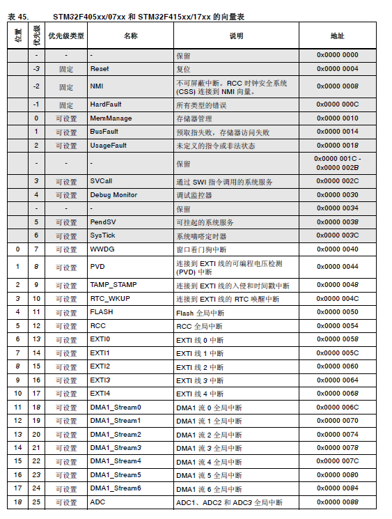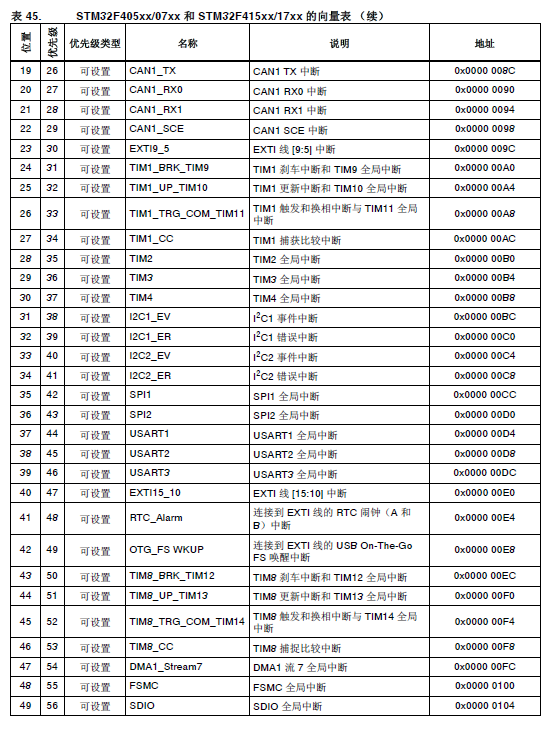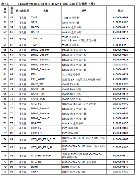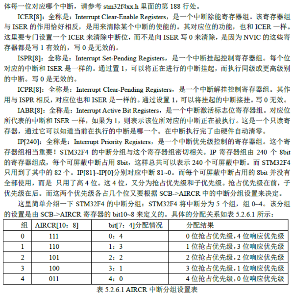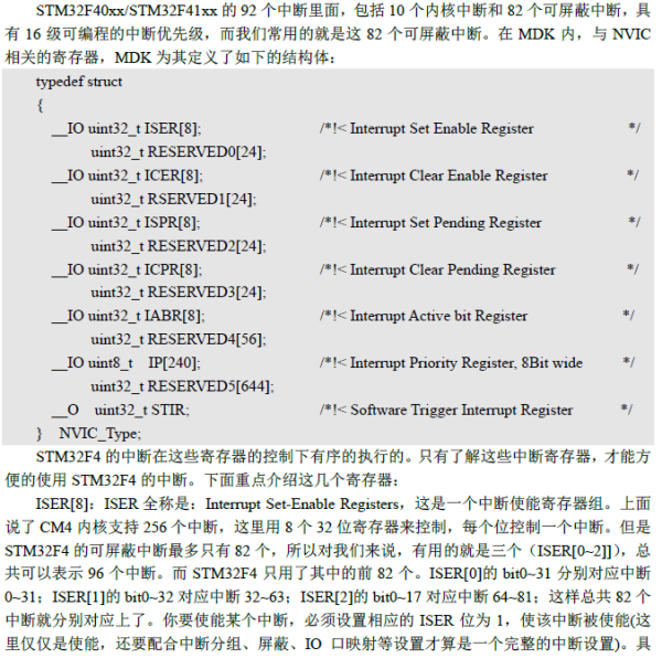 最多只有82个,所以对我们来说,有用的就是三个(ISER[0~2]),总共可以表示96个中断;而STM32F4只用了其中的