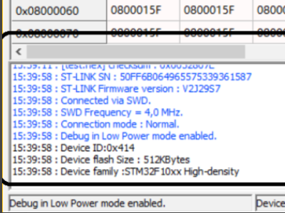 5、开始连接目标,成功后会在软件工具栏左侧显示目标芯片信息,同时会在下面的消息框进行相关提示。