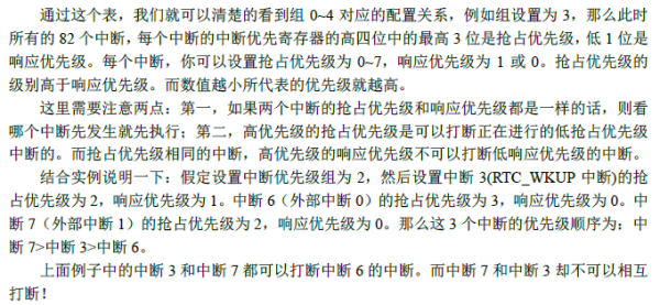 这4位,又分为抢占优先级和响应优先级;抢占优先级在前,响应优先级在后;也就是说,抢占优先级在高位,响应优先级在低位;