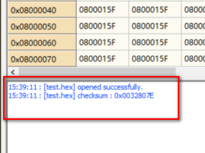 3、软件会将该HEX文件加载到窗口,同时会在下面的消息框显示文件的校验码。