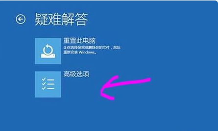 3,在“疑难解答”的选项内,再选择“高级选项”。