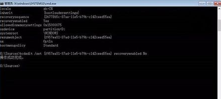 6,接着输入bcdedit /set {GUID} recoveryenabled No回车运行,运行该命令后就会暂时禁用系统的自动启动修复功能,其中的{GUID}即为上一步中记录的字符。