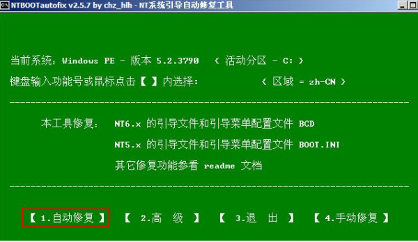 3、在打开的修复系统引导窗口中,点击“1.自动修复”,如下图所示: