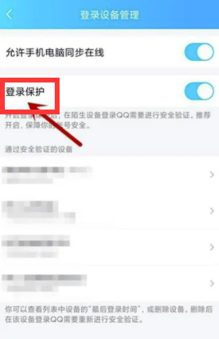 6.点击第二行的"登录保护"关闭。