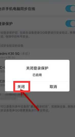 7.系统弹出是否"关闭登陆保护",点击"关闭"就好。