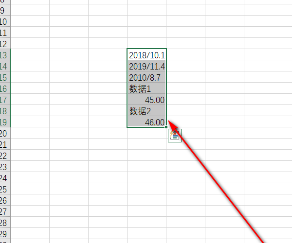 4、填充柄:是快速填充单元格工具。在选定的单元格右下角,会看到方形点,当鼠标指针移动到上面时,会变成细黑十字形,拖拽它即可完成对单元格的数据、格式、公式的填充。
