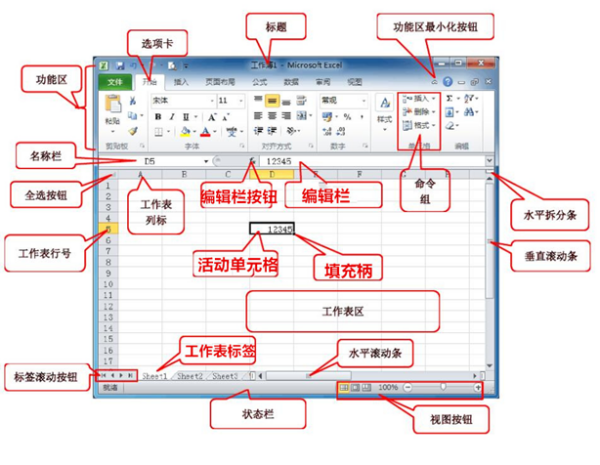 3、工作表标签:位于工作簿窗口的左下角,默认名称为 Sheet1、Sheet2、Sheet3...,单击不同的工作表标签可在工作表间进行切换。