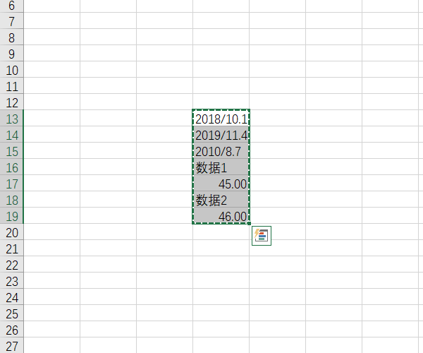 3、选中一块大小和原表格相同的区域。如以下图所示: