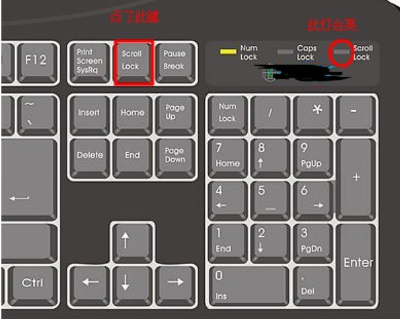 2、这时,需要按下键盘上的“ScrollLock”键。