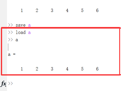 3、使用“load a”,读取a.mat文件数据,读取之后,就可以直接使用mat文件里面的a变量。