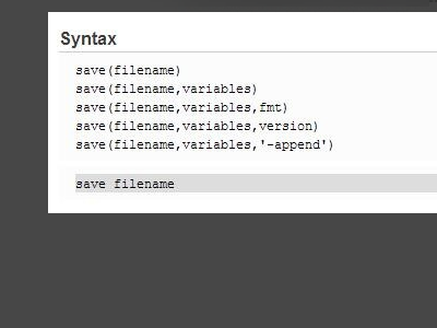 3、可以看到save函数的功能是将工作控件中的变量保存到文件中,其格式如下。