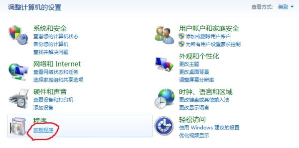 2、单击“程序”下方的“卸载程序”