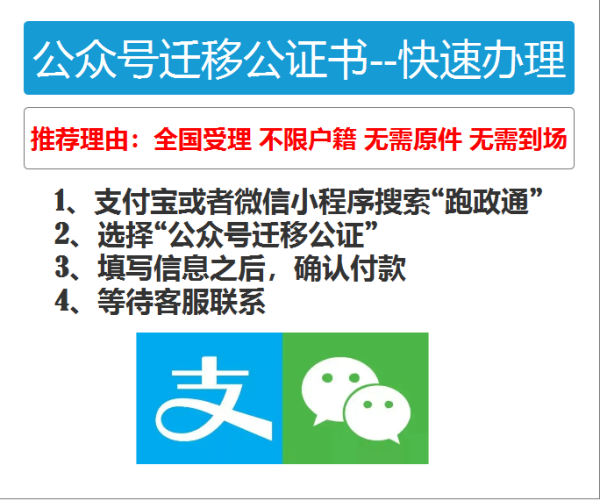 如果是正常注销的,那就可以迁移不影响,如果是非正常的就可能会影响了.小程序跑政通上可以办理公众号的迁移公证1线上就可以公证了, 2支付宝或者微信小程序搜索“跑政通”, 3找到“公众号迁移公证”就可以办理了。可以加速办理。