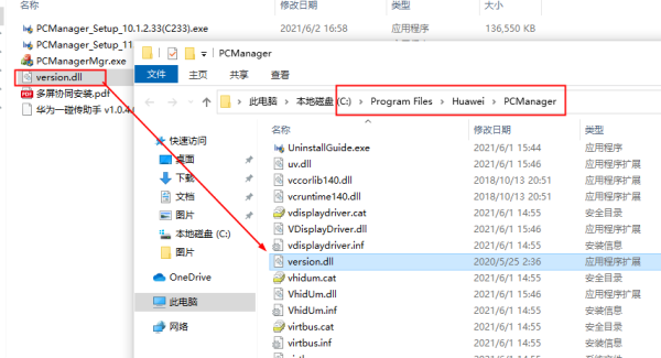 7、将文件夹中的version.dll文件复制到华为电脑管家的安装目录内,然后将电脑系统的时间修改为正常的时间即可!