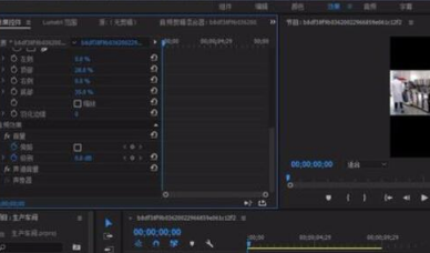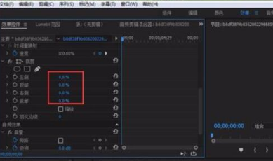 5、在页面左上角的【效果控件】下,就可以直接设置左侧、顶部、右侧、底部的位置参数,或者直接用鼠标在参数上左右来回的拖动,就可以改变视频的界面大小。